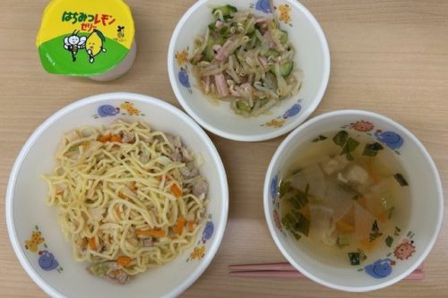 ・スパゲティナポリタン ・豆乳スープ ・みかんのサラダ ・ソフール