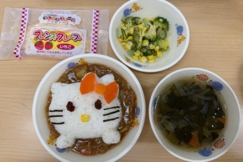 ・ゆかりごはん ・味噌汁 ・鶏肉の照り焼き ・ツナと野菜の和えもの ・オレンジ