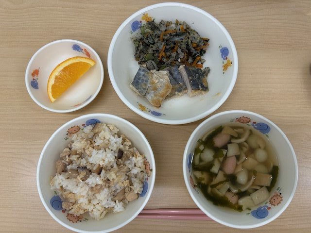 ・きのこご飯 ・すまし汁 ・鰆西京焼き ・胡麻和え ・オレンジ