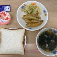 ・焼き鳥丼 ・すまし汁 ・切干大根の和え物 ・オレンジ