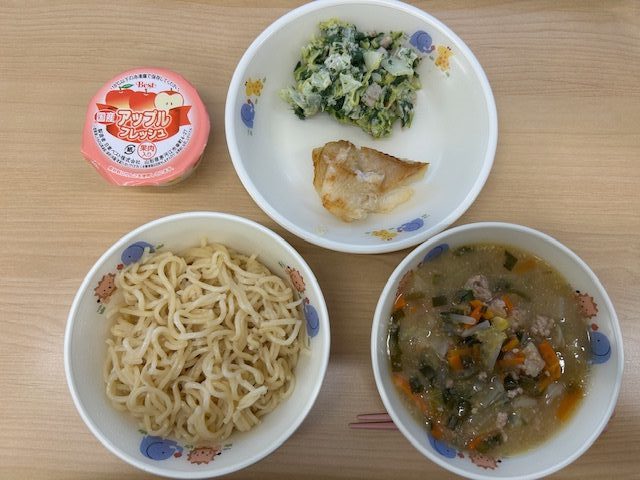 ・タンタン麺 ・カレイのムニエル ・ほうれん草と白菜のホットサラダ ・アップルフレッシュ