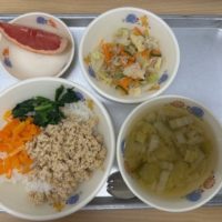 ・ご飯 ・カルシウムふりかけ ・味噌汁 ・納豆ふろふき大根 ・バナナ