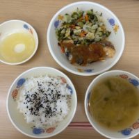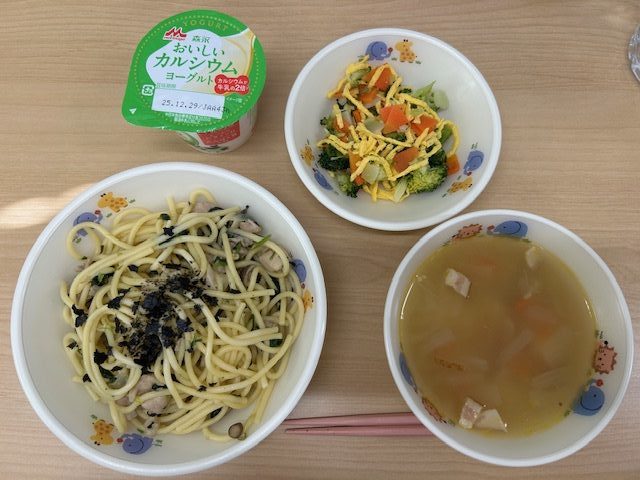 ・和風スパゲティ ・コーンスープ ・野菜サラダ ・カル鉄ヨーグルト