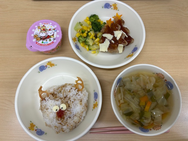 ・トナカイおにぎり ・アルファベットスープ ・モミの木ハンバーグ