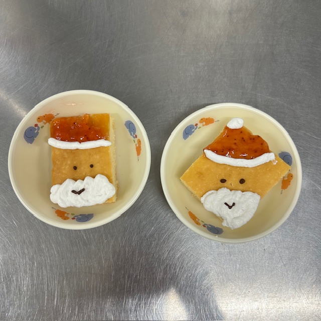 おやつはサンタさんの顔のケーキが登場しました🎅