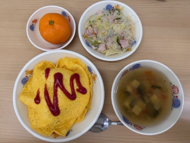 ・オムライス ・五目スープ ・春雨サラダ ・みかん