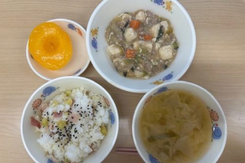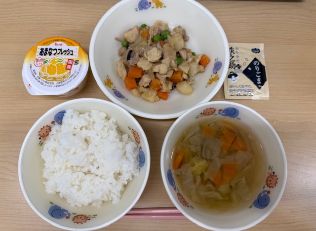 ・ご飯 ・カルシウムふりかけ ・すまし汁 ・高野豆腐と野菜の含め煮 ・いよかんゼリー