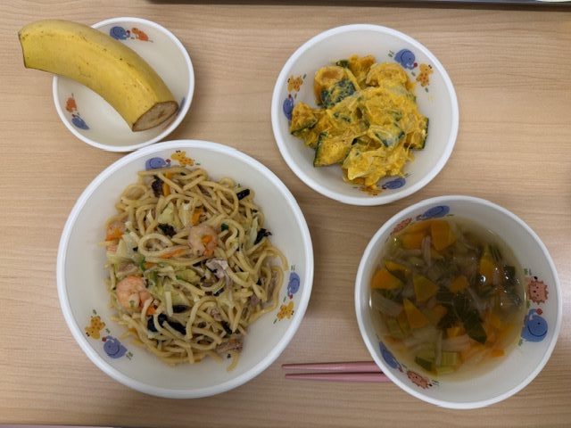 ・上海焼きそば ・中華スープ ・南瓜のごまサラダ ・バナナ